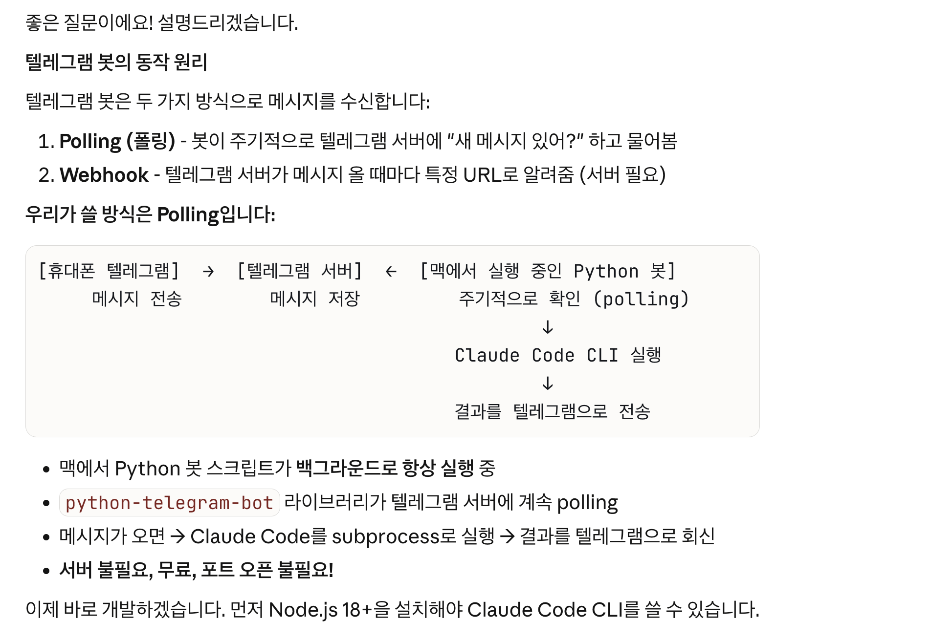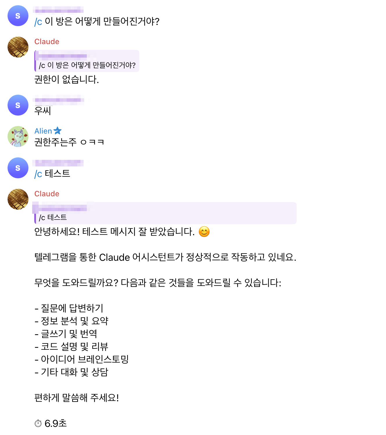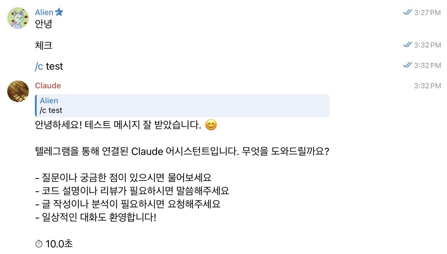 초보자라도 텔레그램이랑 연동해서 클로드에 메시지를 보내기까지 10분도 안걸릴텐데
