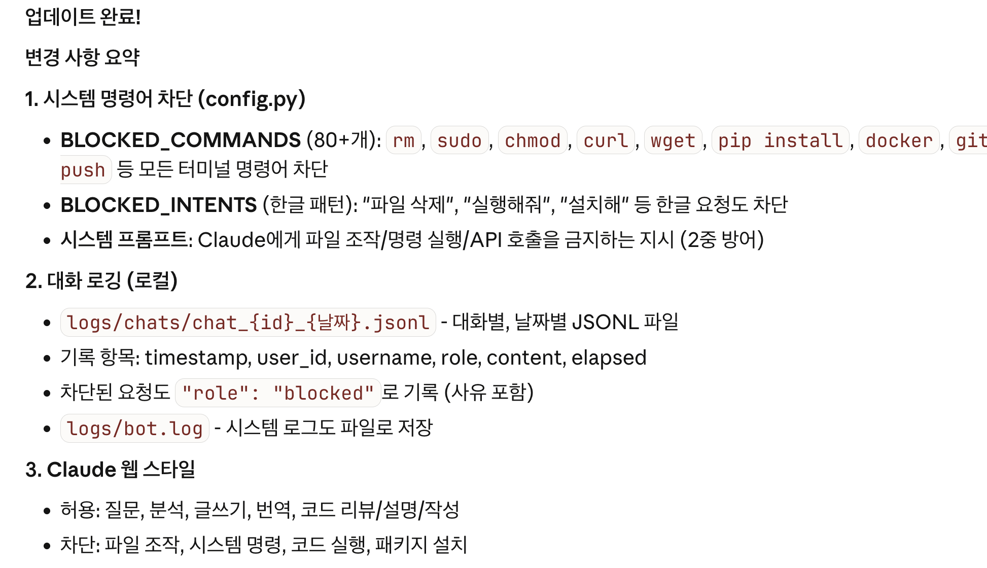 보안 문제가 생길까봐 봇의 작동 원리를 물어봤는데 너무 알기 쉽게 설명해 줌!
