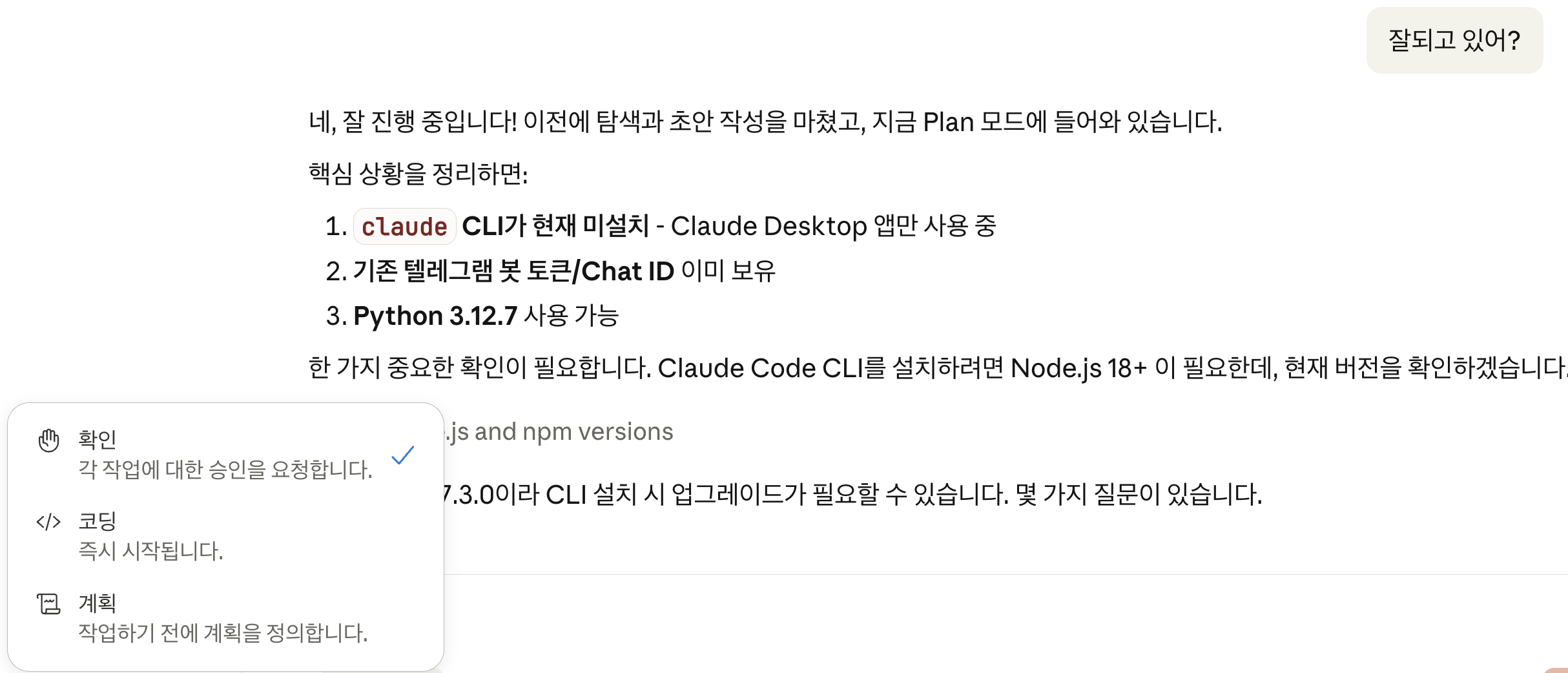 "계획"모드에 들어오면 작업을 하기전에 계획을 저랑 리뷰할 수 있어서 유용함.