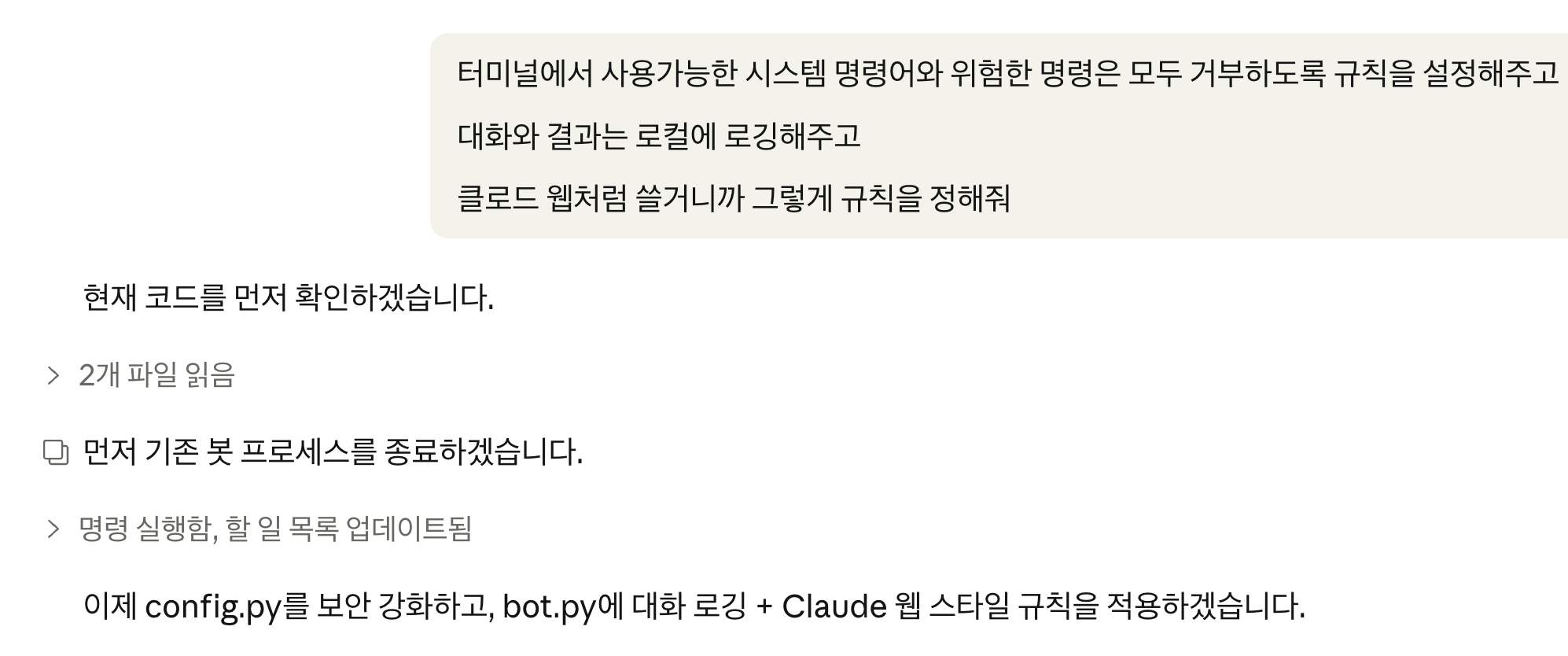 여자친구랑 클로드코드를 채팅방에 초대해서 대화하면 재밌겠는데?