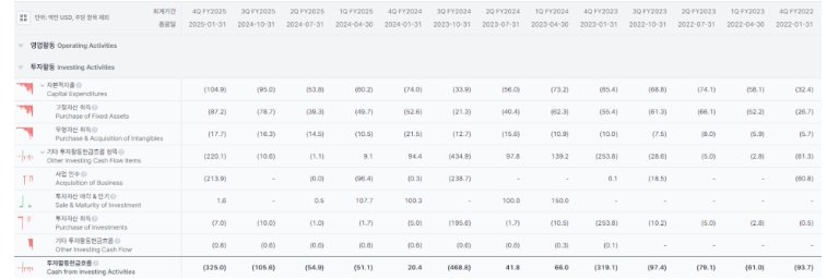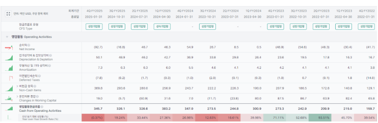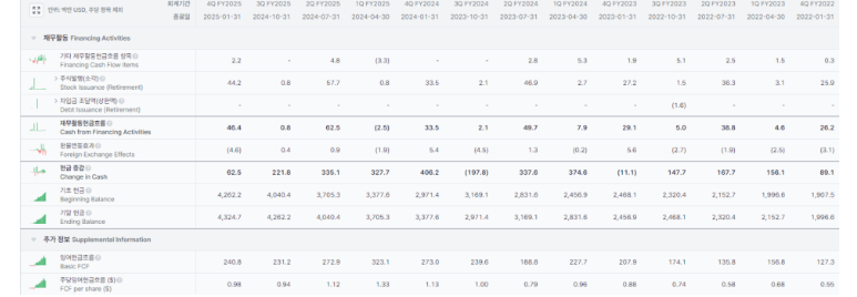 재무현금흐름 특이사항 무, FCF 증가는 단기적 하락 추세이나, GUIDANCE대로 25년 하반기를 봐야함.