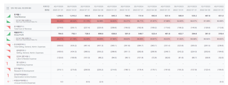 FY 2026 매출은 47억 4,350만달러에서 48억 550만달러 사이로 예상, 20%에서 22% 성장 반영.
