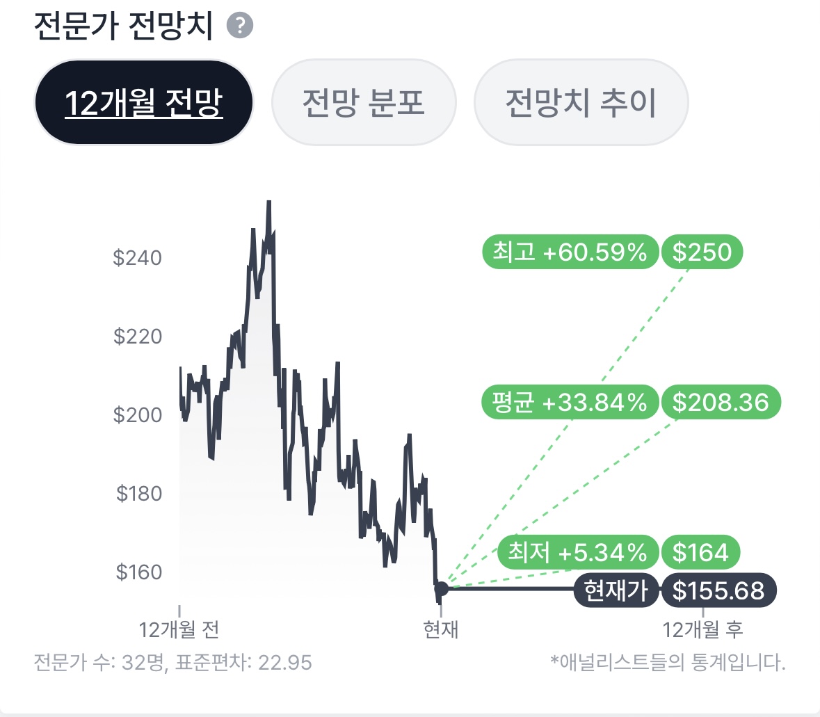 그리고 (지금까지의 전기차 실적) +(미래 수익원에 대한 DREAM)이 150~250달러 사이에서 VALUE를 형성했다고 본다.