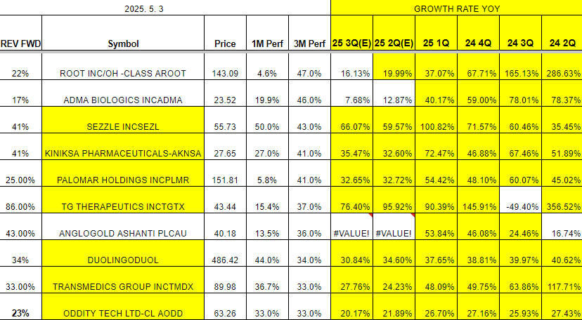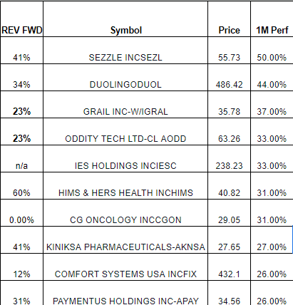 3. 1M 주식 수익률 기준(+ 시총 $1~50B + rev.fwd 15%이상)