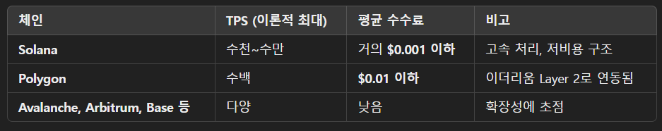 ① Solana, Polygon 등의 설계는 ‘속도’와 ‘저렴함’ 중심