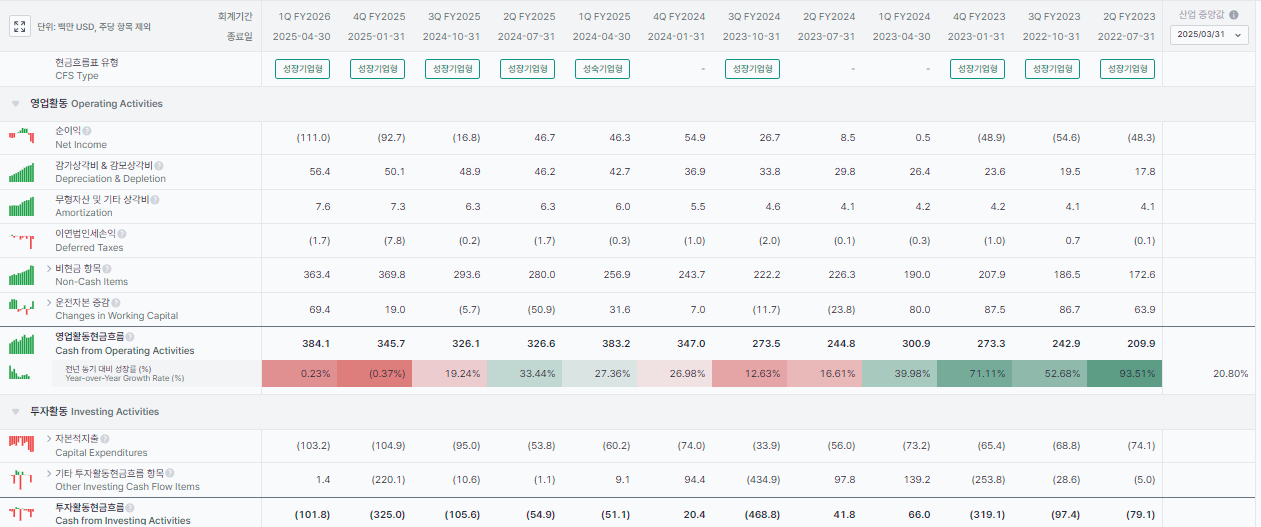 최근 투자활동으로 1회성 비용은 나갔지만, 다시 현금 증감이 본래의 궤도로 돌아가고 있는 것으로 보입니다.
