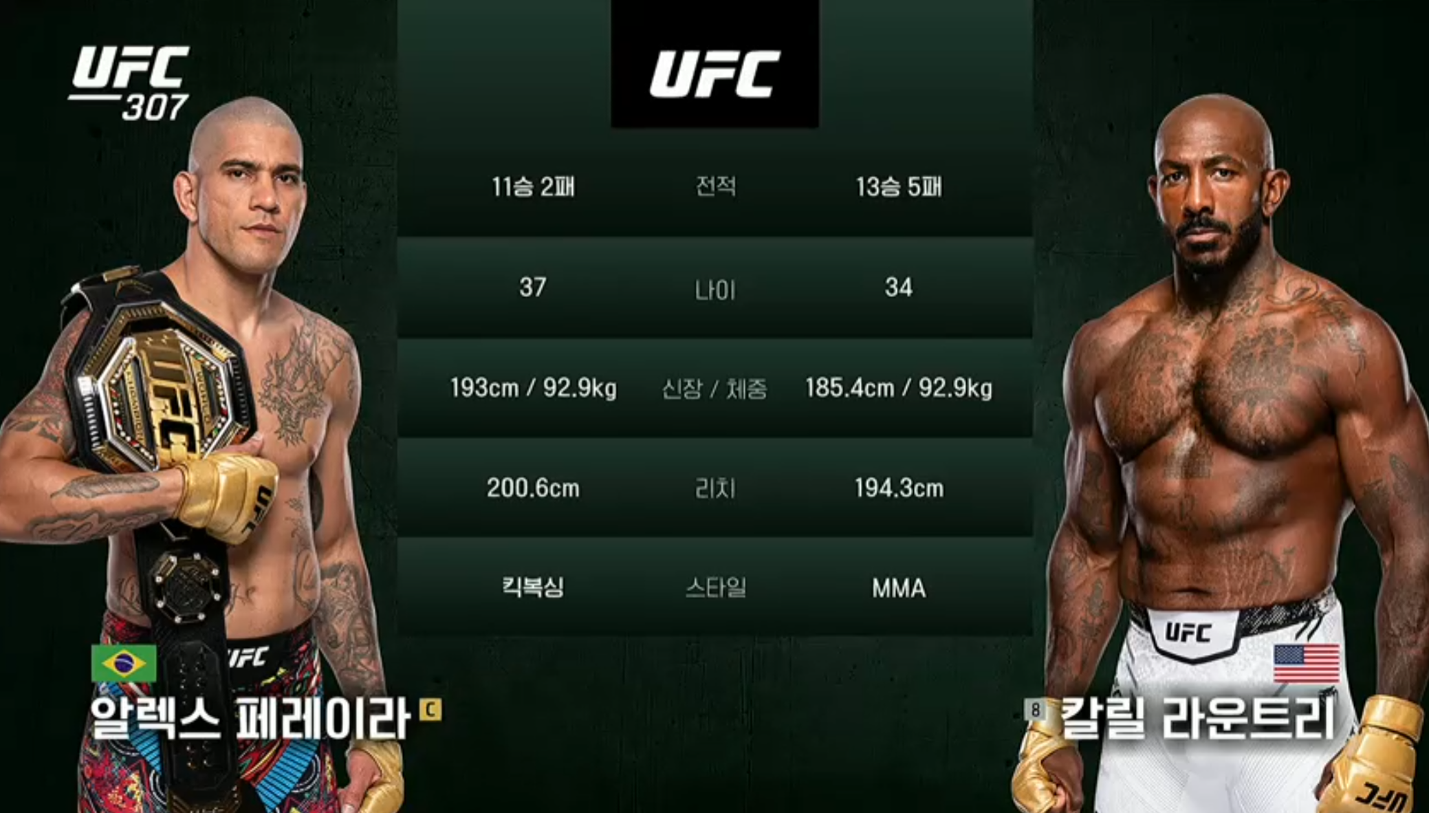1~2라운드에는 몇번 페레이라가 위험한 장면들도 있었다. 하이킥 실패하고 안면에 라이트 걸려서 휘청거리고, 슬립하다가 라운트리 왼발 하이킥 올라오는거 간신히 반응했지만 안면에 적중한 것도 있었고... 진짜 스타일 자체가 하이리스크 하이리턴이라 보는 내내 졸이게 만드는 매력이 있는 것 같다.