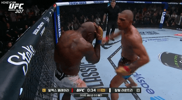 3~4라운드로 가면서 라운트리 체력이 떨어지자 펼쳐지는 페레이라의 슥빡쇼