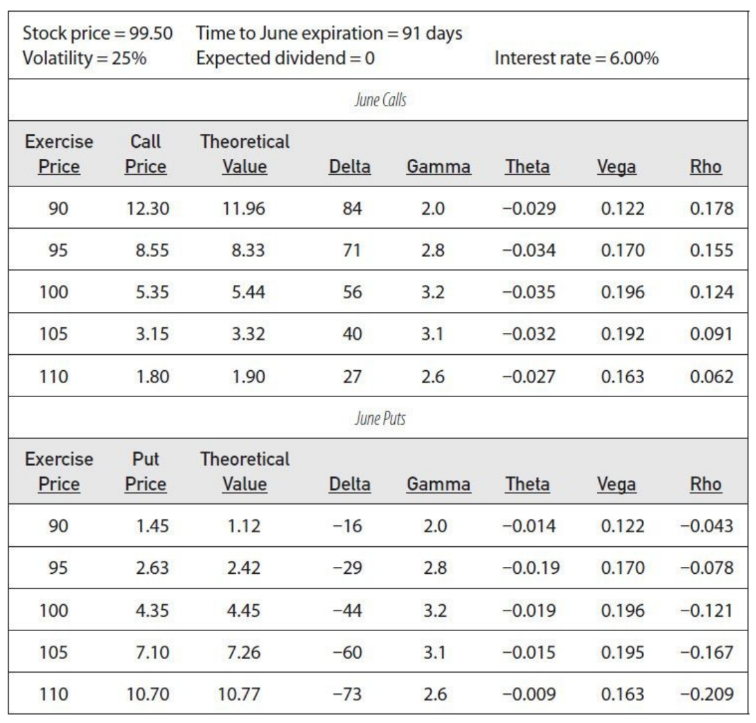 높은 행사가격에서 증가하는 등가격 옵션의 세타와 베가와 달리, 등가격 옵션의 감마는 높은 행사가격에서 감소한다. 그 이유를 이해하기 위해서는 감마가 기초자산 가격이 1포인트 변할 때 델타의 변화를 나타낸다는 점을 상기해야 한다. 하지만 이론적 가격 모델은 변화를 퍼센트 단위로 측정한다. 이러한 측정법에 따르면, 기초자산 가격이 50일 때 1포인트 가격 변화(2% 변화)는 기초자산 가격이 100일 때 1포인트 가격 변화(1% 변화)보다 크다. 등가격 옵션의 세타와 베가는 행사가격에 비례하지만, 감마는 반비례한다. 따라서 행사가격이 50인 옵션의 감마는 행사가격이 100인 옵션의 감마보다 두 배 크다.