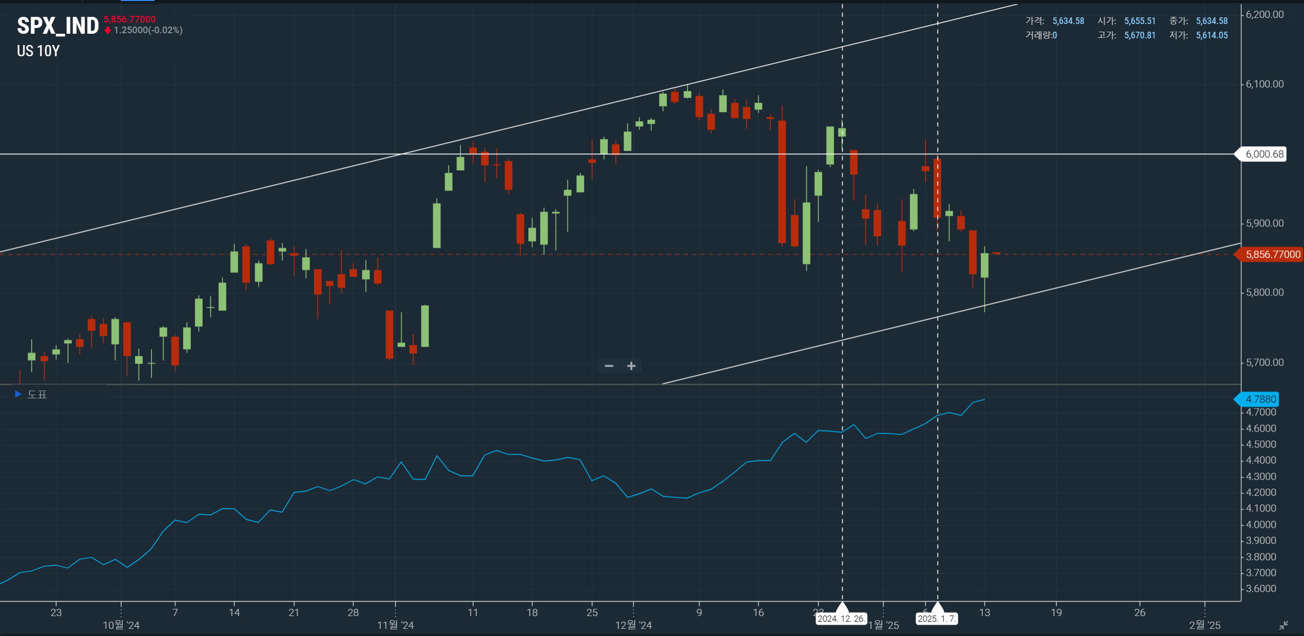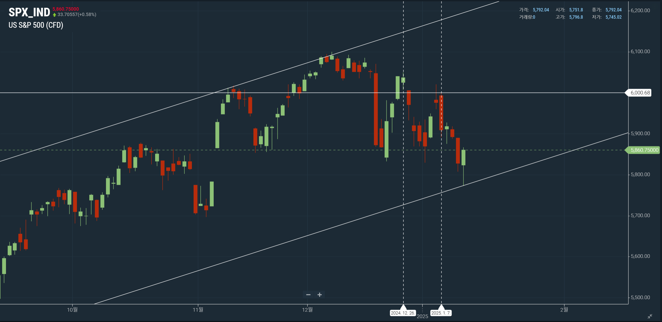 S&P500은 지난 번 VIX매매 때 6,000선을 지지 테스트하지 못하고, 12월 18일 FOMC때 예상치못한 매파적 기조로 인해 장대로 돌파당한 이후로 25일에 다시 6,000선 돌파에 도전했다. 결국 종가로 6,000선 위에서 끝나긴 했지만, 문제는 장대하락을 했던 12월 FOMC 이후와 펀더멘털이 전혀 달라진게 없었다는 것이다.