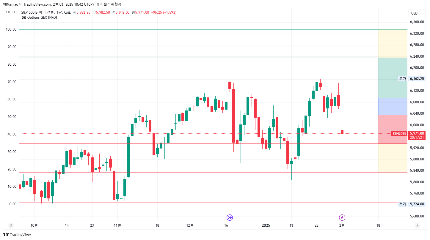거기에 더해 시장은 DeepSeek발 폭락 이후 3영업일간 변동성이 줄어든 상태로 일정 범위내에서 방향성을 못찾고 있었는데, 어느쪽이든 방향성이 날 거라는 예상을 하면서 전고점에 가까우니 하방쪽으로 기회를 탐색했다.