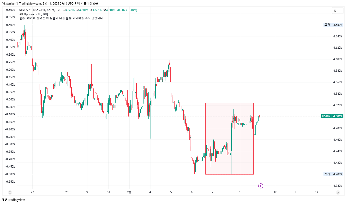 [10년물 국채금리 1시간봉]