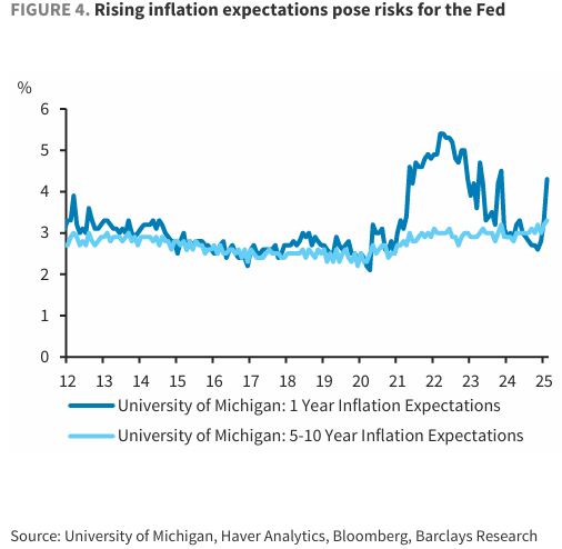 어제자 월가소식을 보니, 현재 UoM(미시간대 소비자 심리지수)에 향후 1년 기대 인플레이션이 4.3%대로 폭등하면서 3번째 하락 추세 고점이 형성되었고