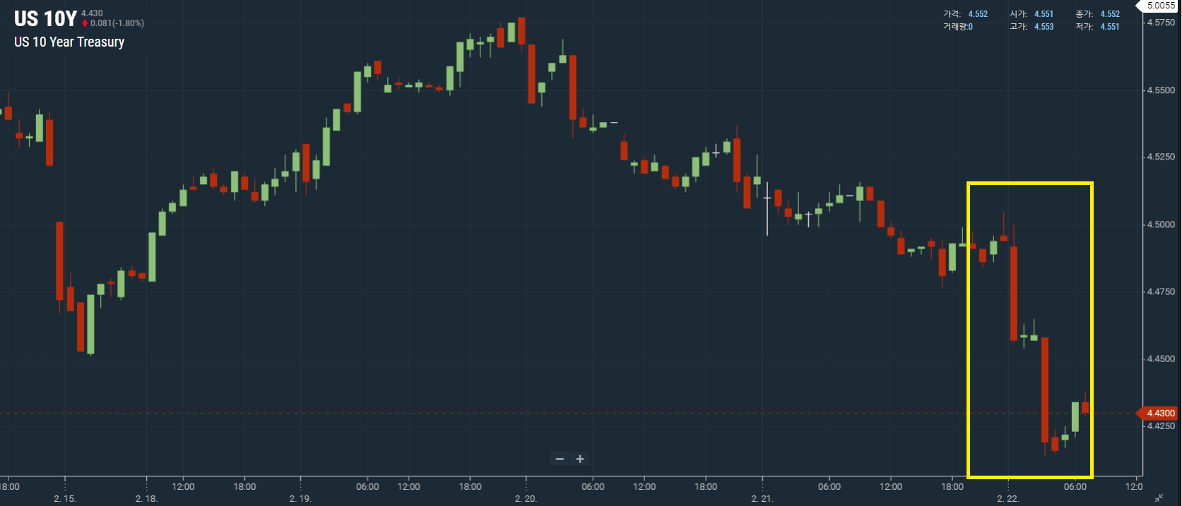 반대로 국채금리가 내리는 것을 보고 "물가가 잡히니까 금리인하를 하겠네? 주식사자"라는 기제가 작용한다는 의미임.