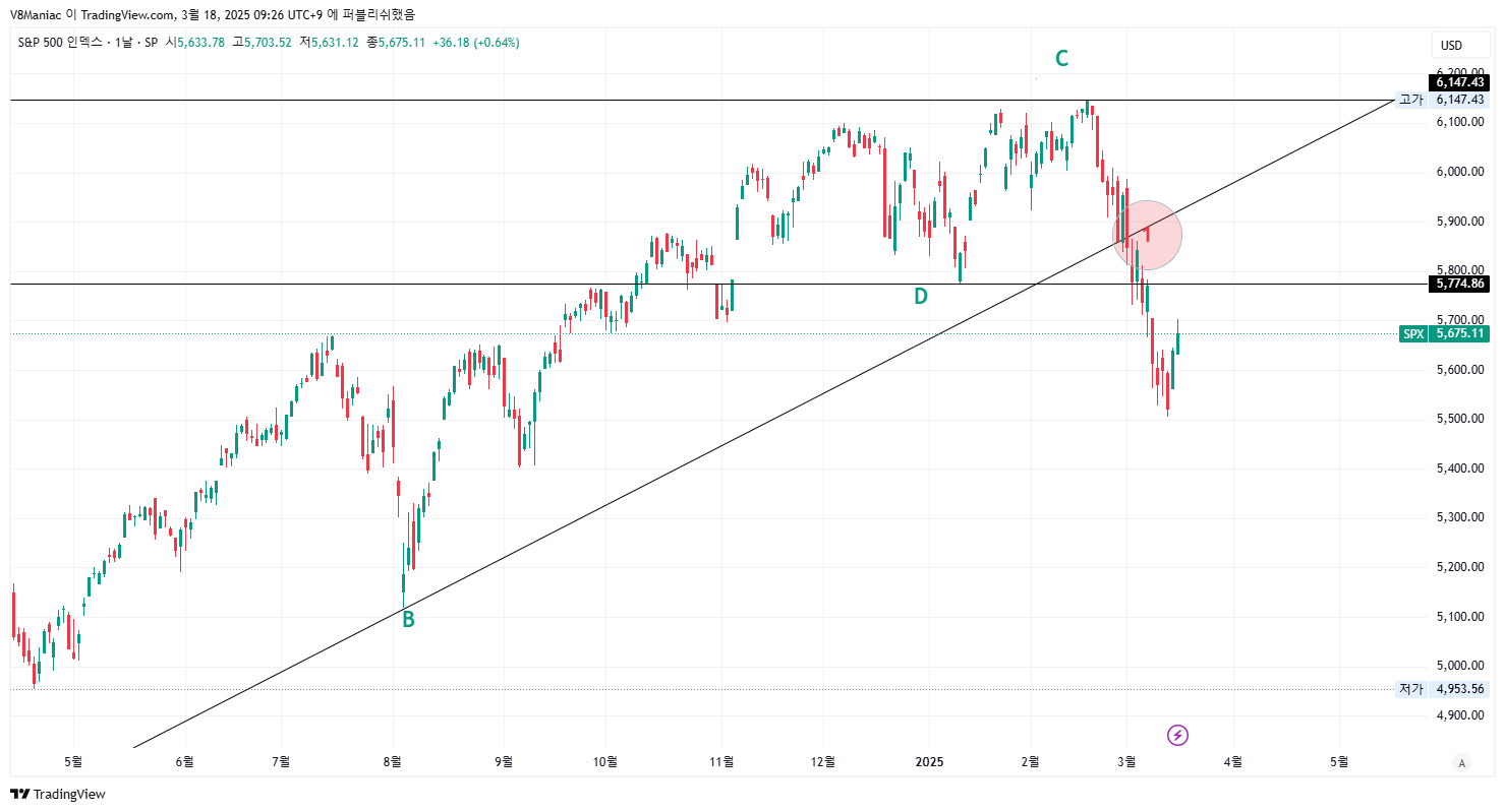 그럼 조금 더 타임프레임을 확대하여 최근의 S&P500 차트를 확인해보겠습니다.