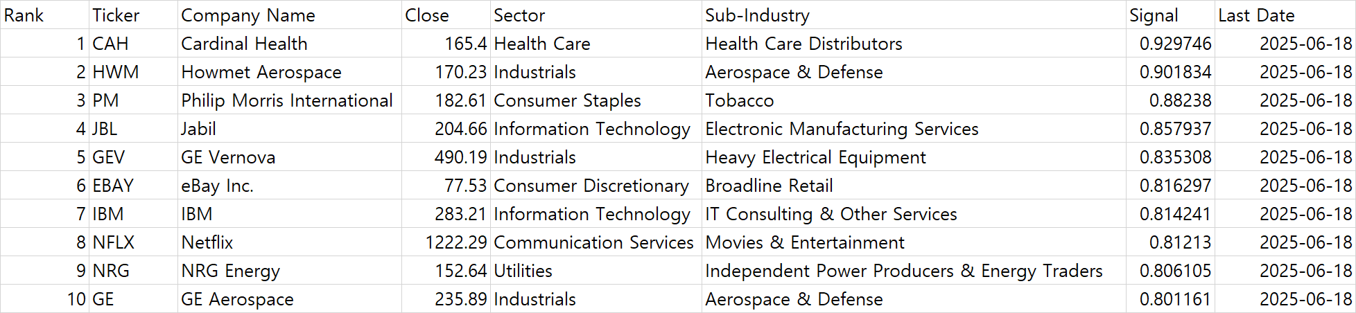 항공 및 방산 (Aerospace & Defense)업종의 강세가 두드러짐