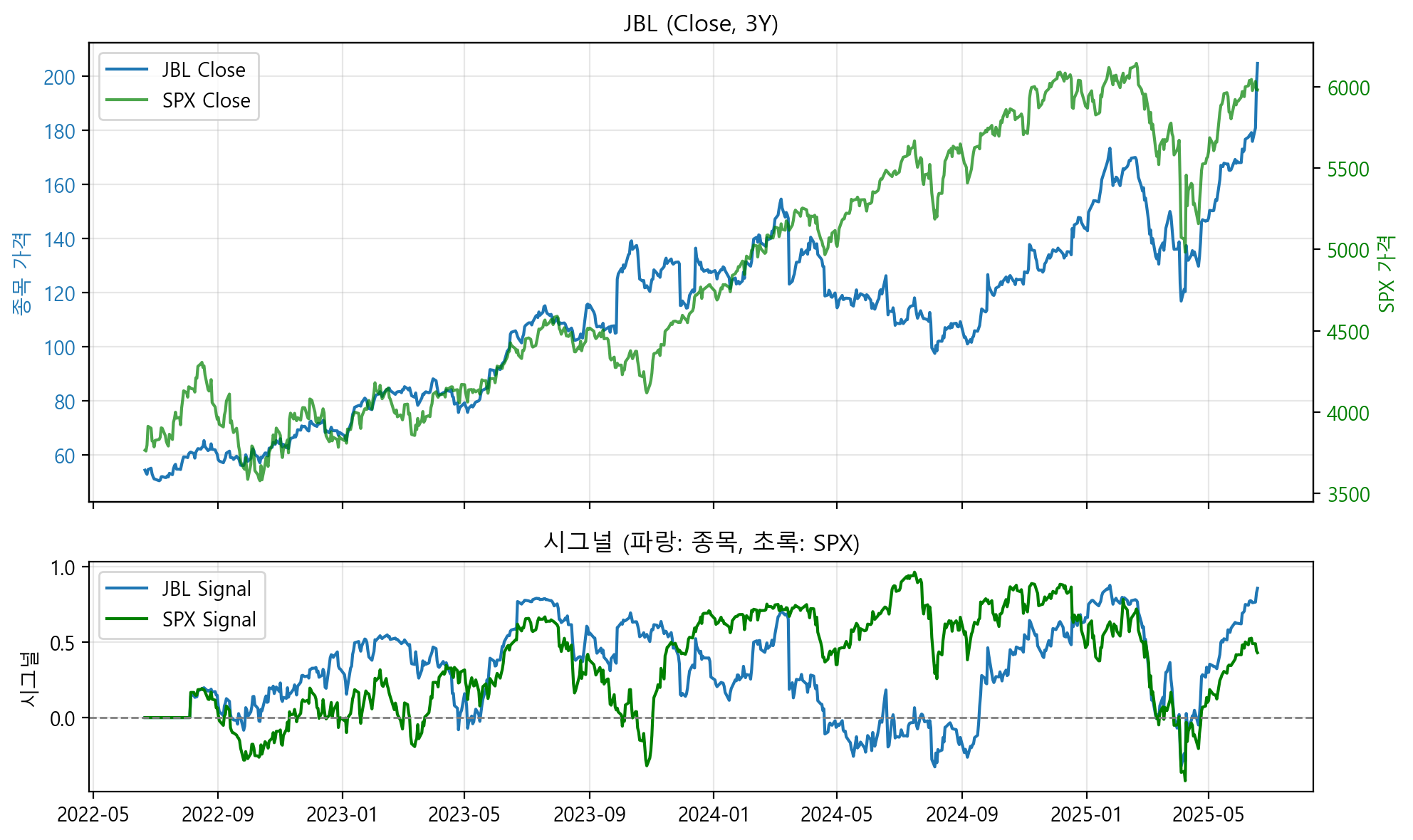 시그널 값은 샤프비율을 누적정규분포로 변환하여 베팅비중으로 환산한 것