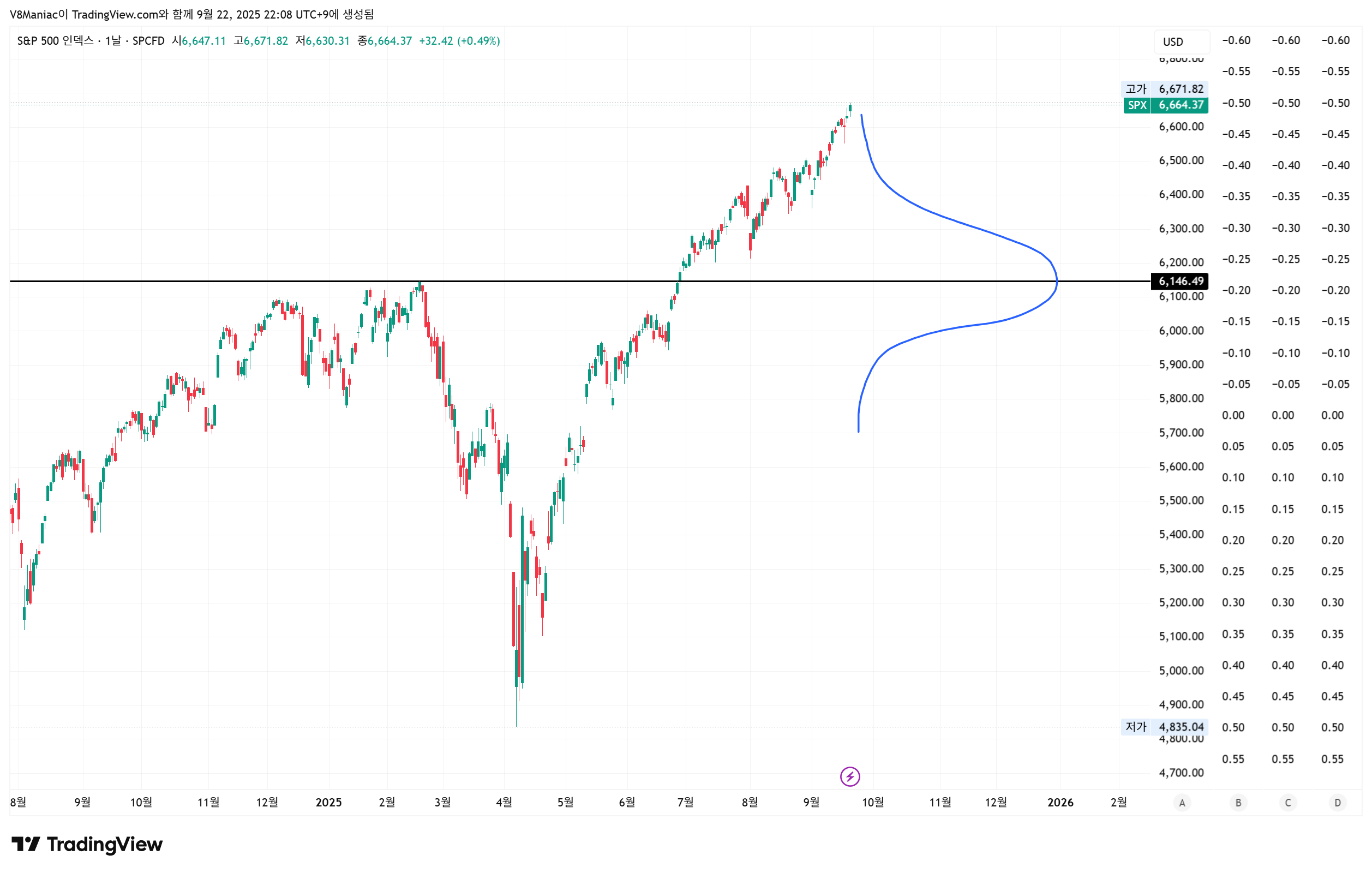 그런데, 만약 검은색 가격대인 6,146부근을 지지점으로 시장참여자들이 많이 인식하기 시작한다면, 그 위치에서는 자기현시적 예언에 의해서 실제로 지지가 일어날 확률이 높아진다.