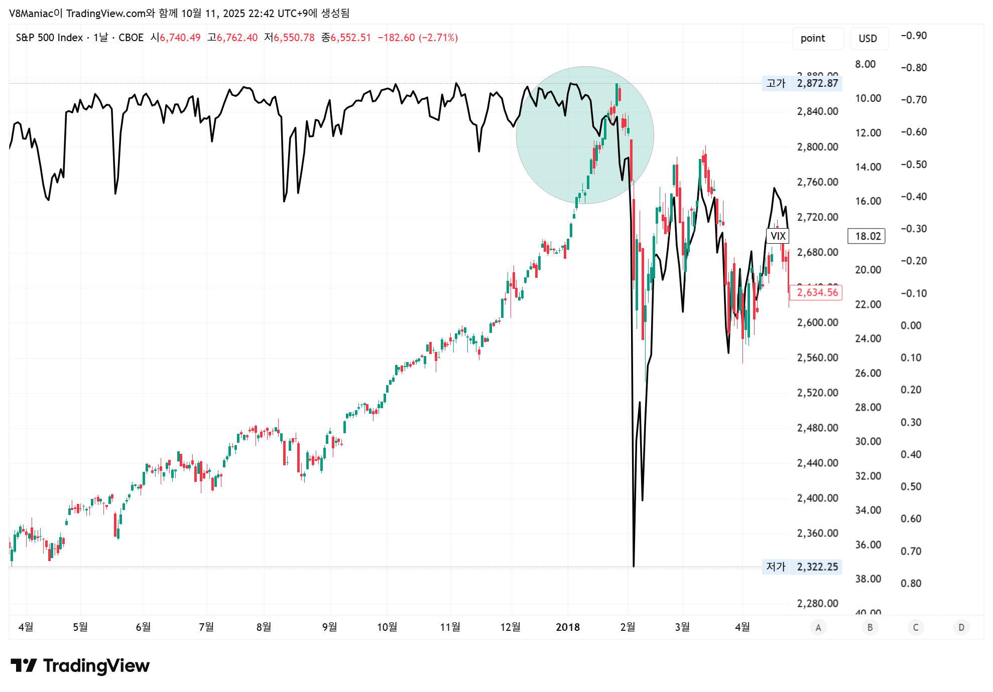 ※ VIX(검은색)는 상하반전 차트