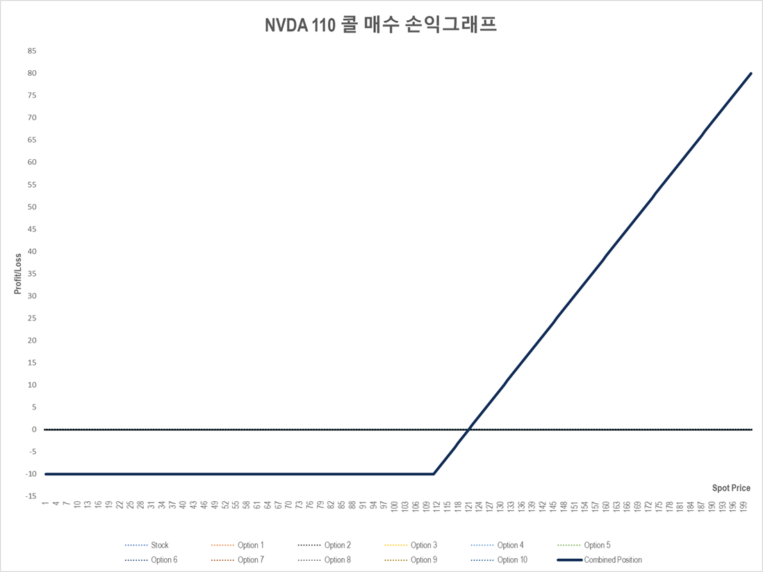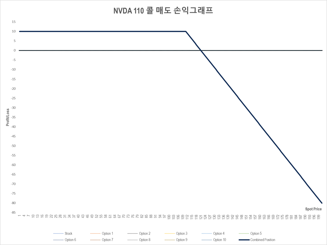 이렇게 NVDA 110 콜 매도의 손익그래프가 형성됩니다.