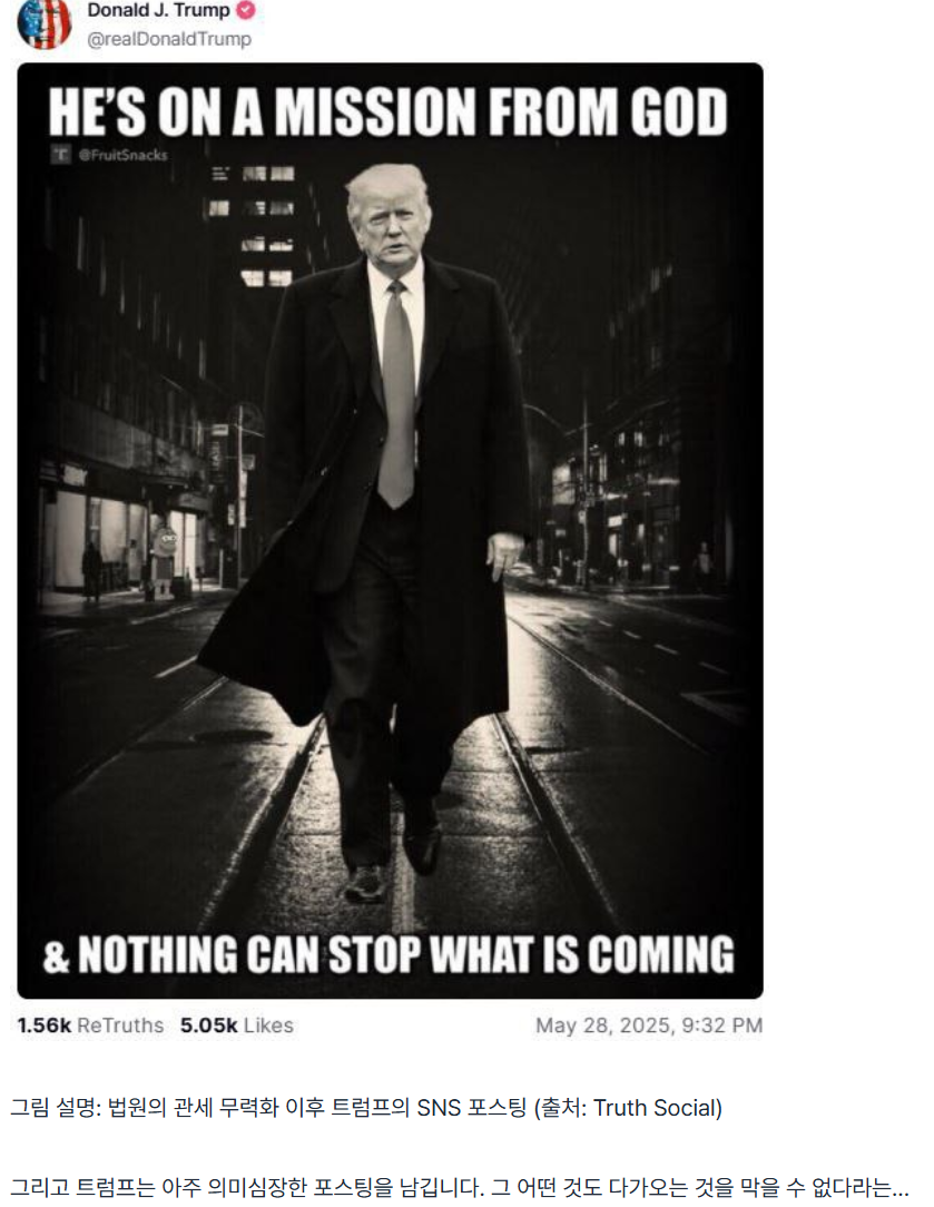 '해방의 날' 이후로 트루스 소셜(Truth Social)에 가입은 해두었지만, 최근 트럼프 전 대통령의 영향력이 줄어든 듯하여 자주 접속하지 않아 해당 사진을 미처 보지 못했습니다. 그래도 평소 '벨리'의 글을 자주 보는 덕분에 확인했습니다. 원자쟁이님 감사합니다.😀 이 사진은 과거 트럼프 전 대통령이 "주식을 사라"고 했을 때와 비슷한, 그러나 정반대의 느낌을 주었습니다. 마치 무언가를 저지르기 ...