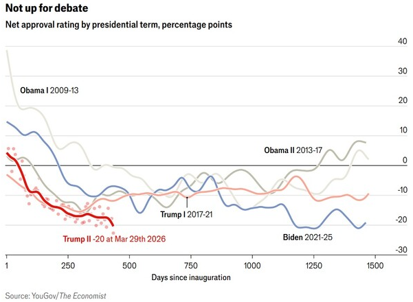 트럼프 2기 행정부에 대한 지지율이 빠른 속도로 하락 중이라는 분석은 여러 곳에서 많이 나와 있음