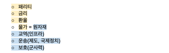 ์ด 7๊ฐ์ง ์์๋ ํํ๊ฐ ์๋ํ๋ ๊ตญ๊ฐ ๊ฒฝ์ ์ ๊ตฌ์กฐ๋ฅผ ํฌ๊ด์ ์ผ๋ก ๋ณด์ฌ์ค.