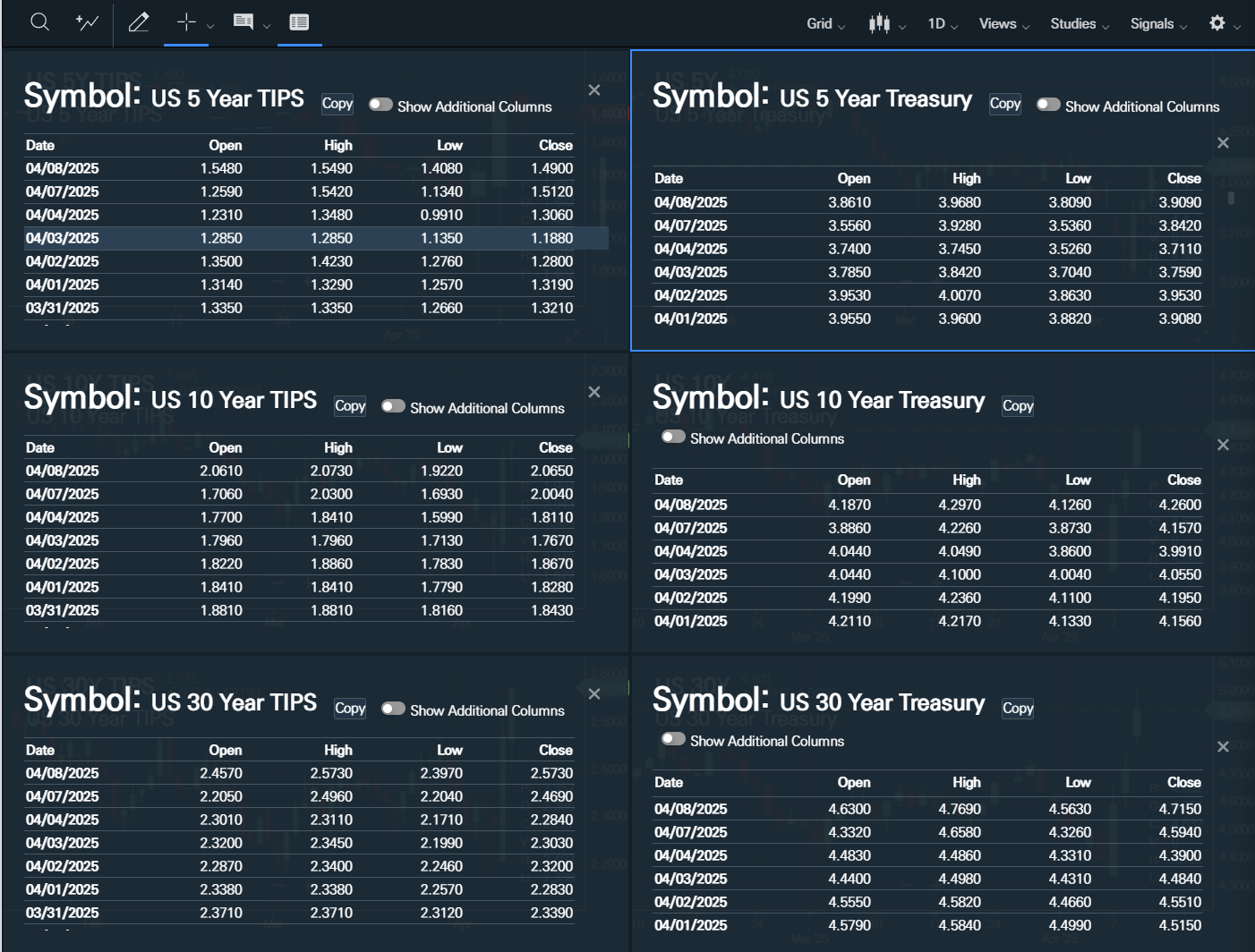 처음에 금리가 올랐다는 말을 듣고는 관세로 인한 기대 인플레이션이 채권 금리를 끌어올렸다고 생각했습니다. https://blog.valley.town/@amiresearch/post/67f315978f6b60b57f0bf800 제 전 분석글에서 주장했듯이 저는 관세는 결국엔 디플레를 가져온다는 뷰 입니다. 그래서 관세가 실행되기 전에 인플레를 반영하여 금리가 위로 튄다면 채권을 추가 매수하려 했는데, 채권 금리를 분해해 분석해보니, 오히려 기대 인플레이션은 그대로인 반면 실질 금리가 상승해서 당황스러웠습니다.