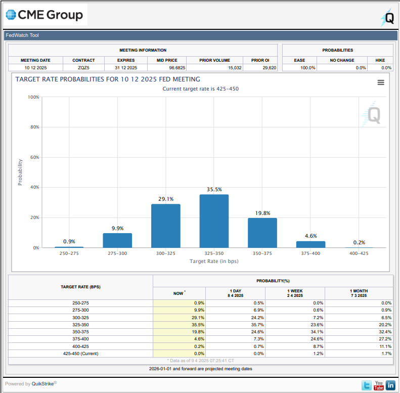 (2025 연말까지 4회의 금리 인하 기대, 차트 출처: CME)