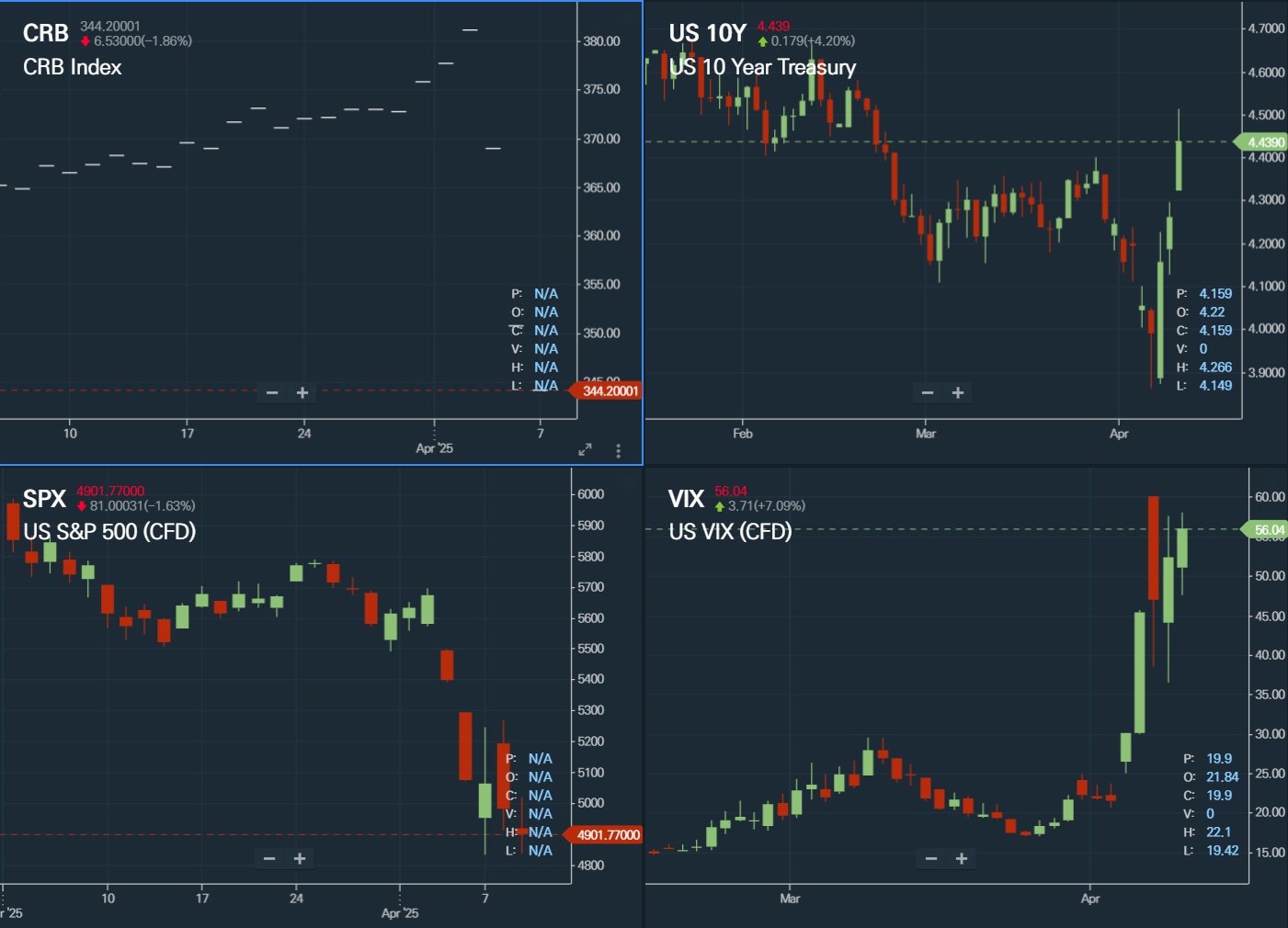 (원자재 지수와 주가지수, 미국채 금리, VIX, 출처: 벨리 플랫폼)