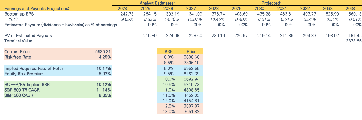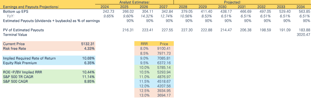 2) 그 후 2034까진 EPS의 역사적 CAGR인 6.51%로 수렴하여 성장(S&P Global 자료 인용, 1988-2024 EPS CAGR이 대략 6.51%)