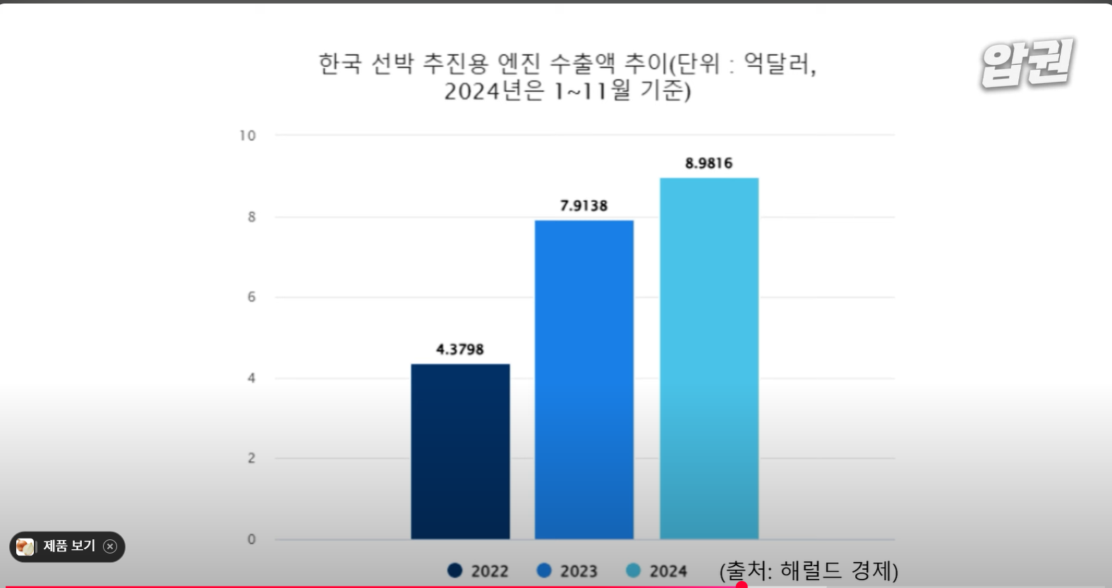 한국기업들이 전세계 엔진 생산량의 50%를 만든다.