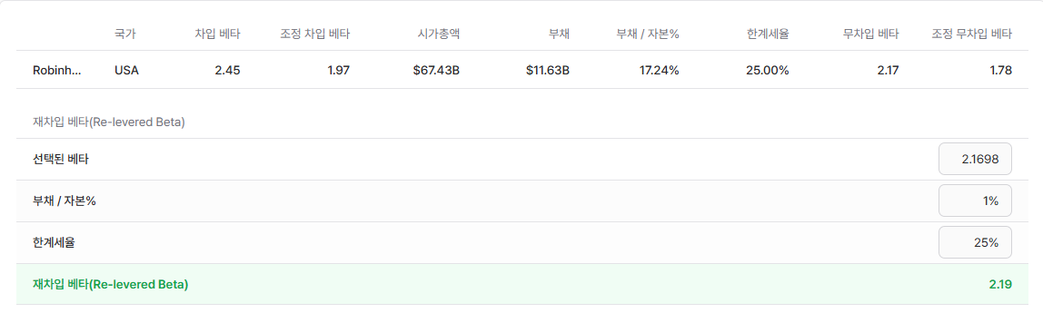 Robinhood의 베타는 회귀베타를 사용하도록 하겠습니다.