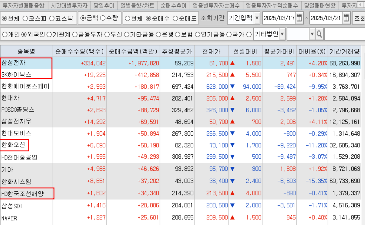 * 주도섹터 : 반도체/자동차 등 우량주 중심 수급