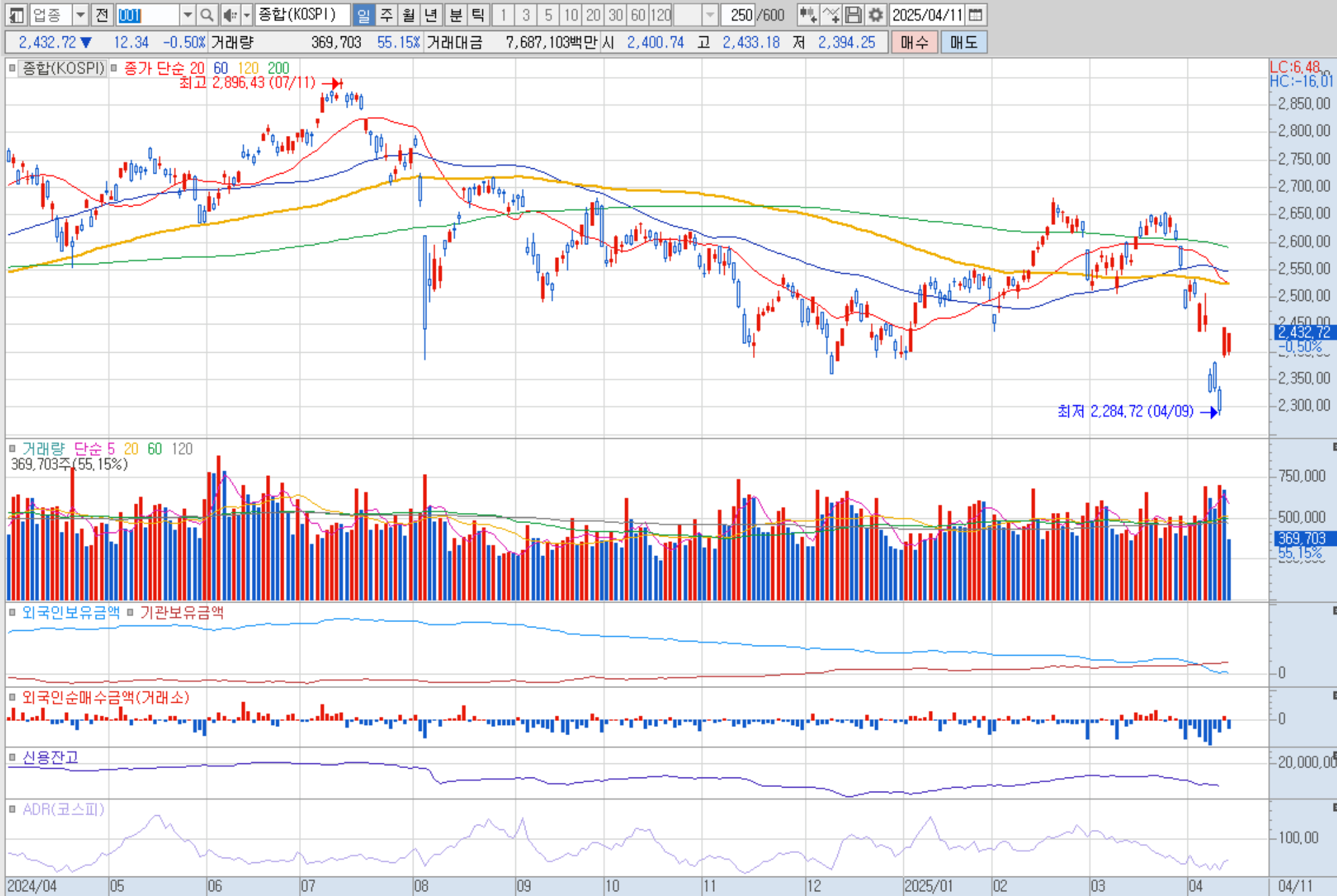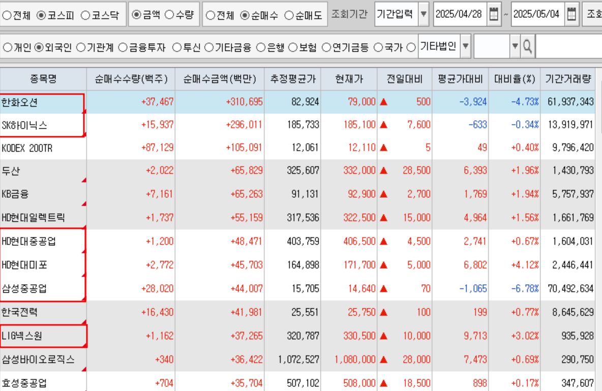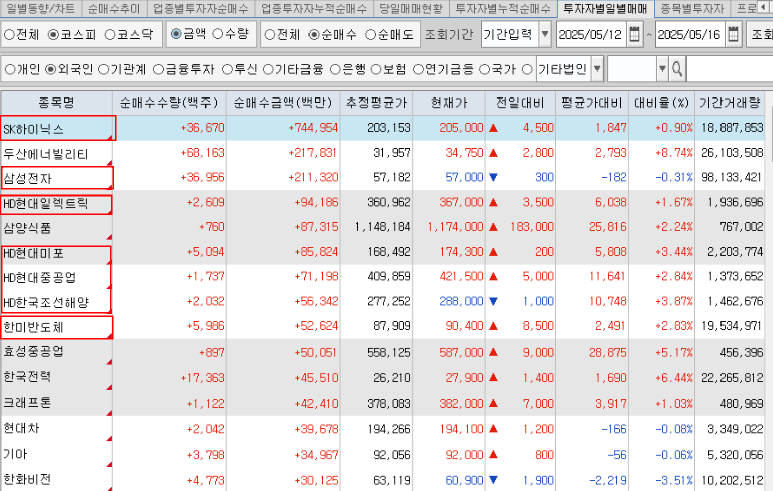 - 외국인 1조953억 원 순매수, 기관은 3765억 원 순매수했지만, 개인은 1조6299억 원 순매도 (외인 3주 연속 순매수)