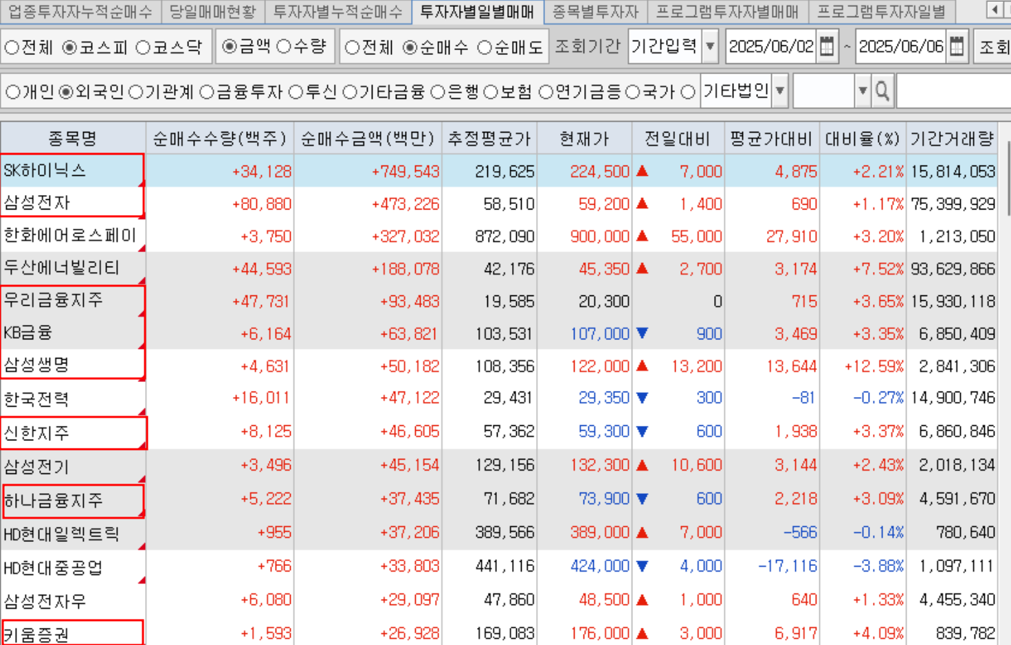 6/2-6/8 외인 매수 우위