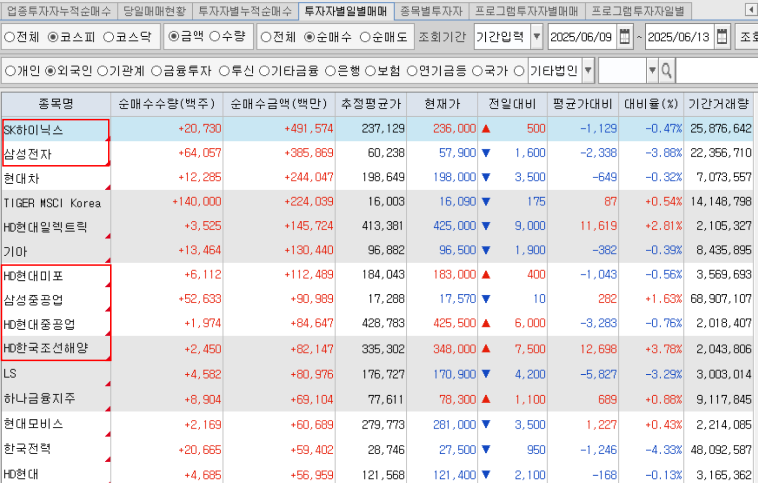 - 외국인 2조 7127억원을 순매수, 개인과 기관은 각각 4589억원, 2조1970억원을 순매도