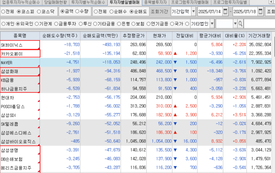 7/14~7/18 외인 수급 상위
