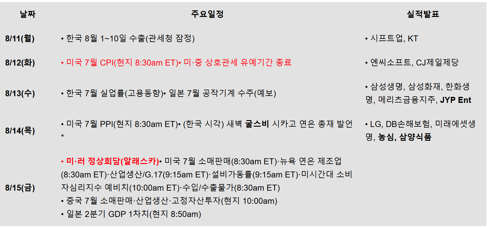 -> 만약 무난한 CPI로 9월 FOMC에 금리 인하로 이어지는 흐름이라면, 금리인하 수혜주 중심으로 포폴 재편 필요할 것 (AI, 바이오, 증권, 건설 등)