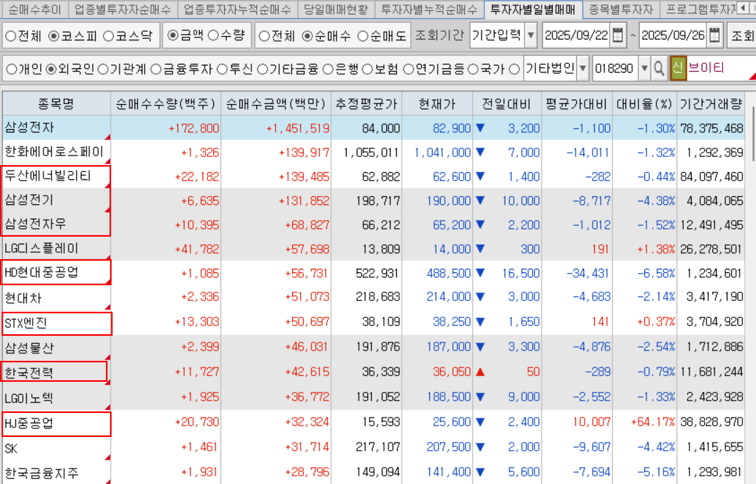 한미 관세협상 타결이 주요 상승 동력으로 작용했다. 특히 자동차 관세가 기존 25%에서 15%로 낮아지면서 좀처럼 힘을 내지 못하던 자동차주가 탄력을 받았다. 여기에 호실적을 낸 반도체 ‘투톱’ 삼성전자와 SK하이닉스가 연일 신고가를 경신하며 주도주 역할을 했다. 하이닉스는 서버 수요 호조에 힘입어 3분기 영업이익 11조4000억원을 기록했고, 삼성전자 역시 10만 원대를 회복하며 투자심리를 끌어올렸다.