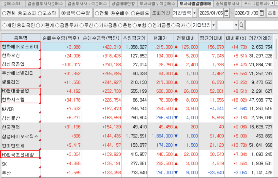 1/5~1/9 외인수급동향