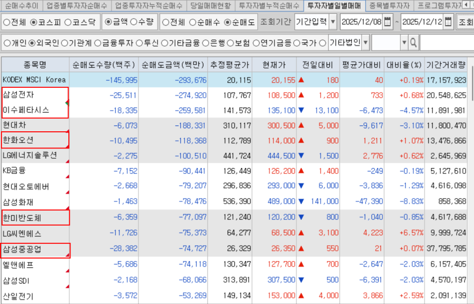 - 기관은 2조8538억원 순매수, 개인과 외국인은 각각 3조3558억원, 4709억원을 순매도 (외인 3주만에 순매도 전환)