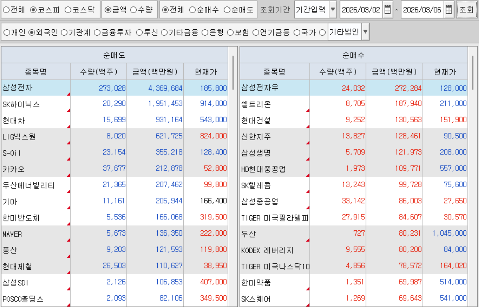 3/2~3/6 외인수급상위