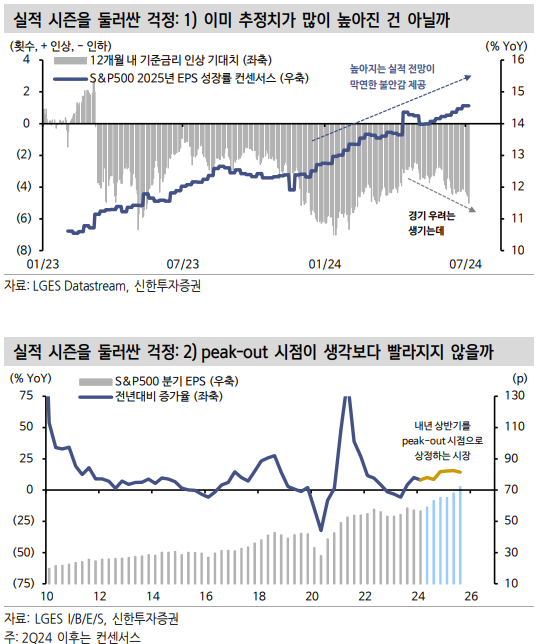 - 현재 컨센서스는 S&P 500 EPS 증가율이 내년 1분기 정점을 통과할 것으로 상정.