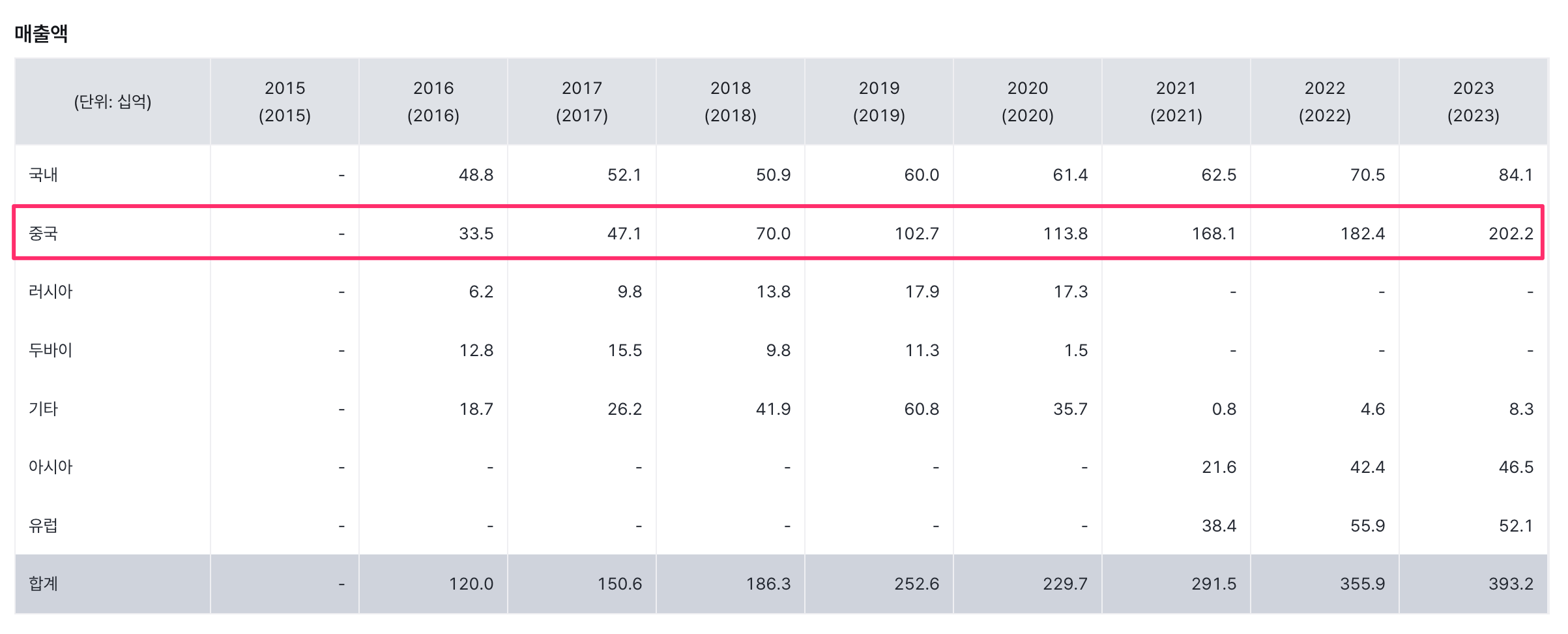 2016년도 비해 국내 매출은 2배 증가했으나 중국 매출은 6배 증가했다 ㄷㄷㄷ