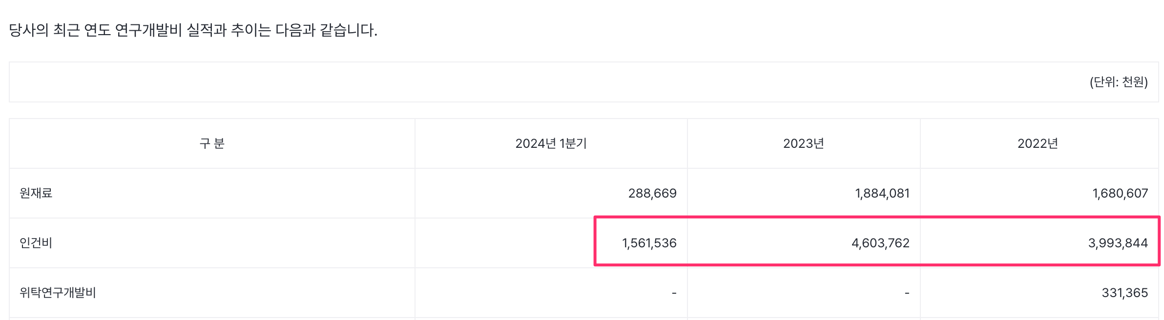 연구개발에는 인건비가 많이 쓰이고 다양한 연구개발 실적이 있으나 이해하지는 못함