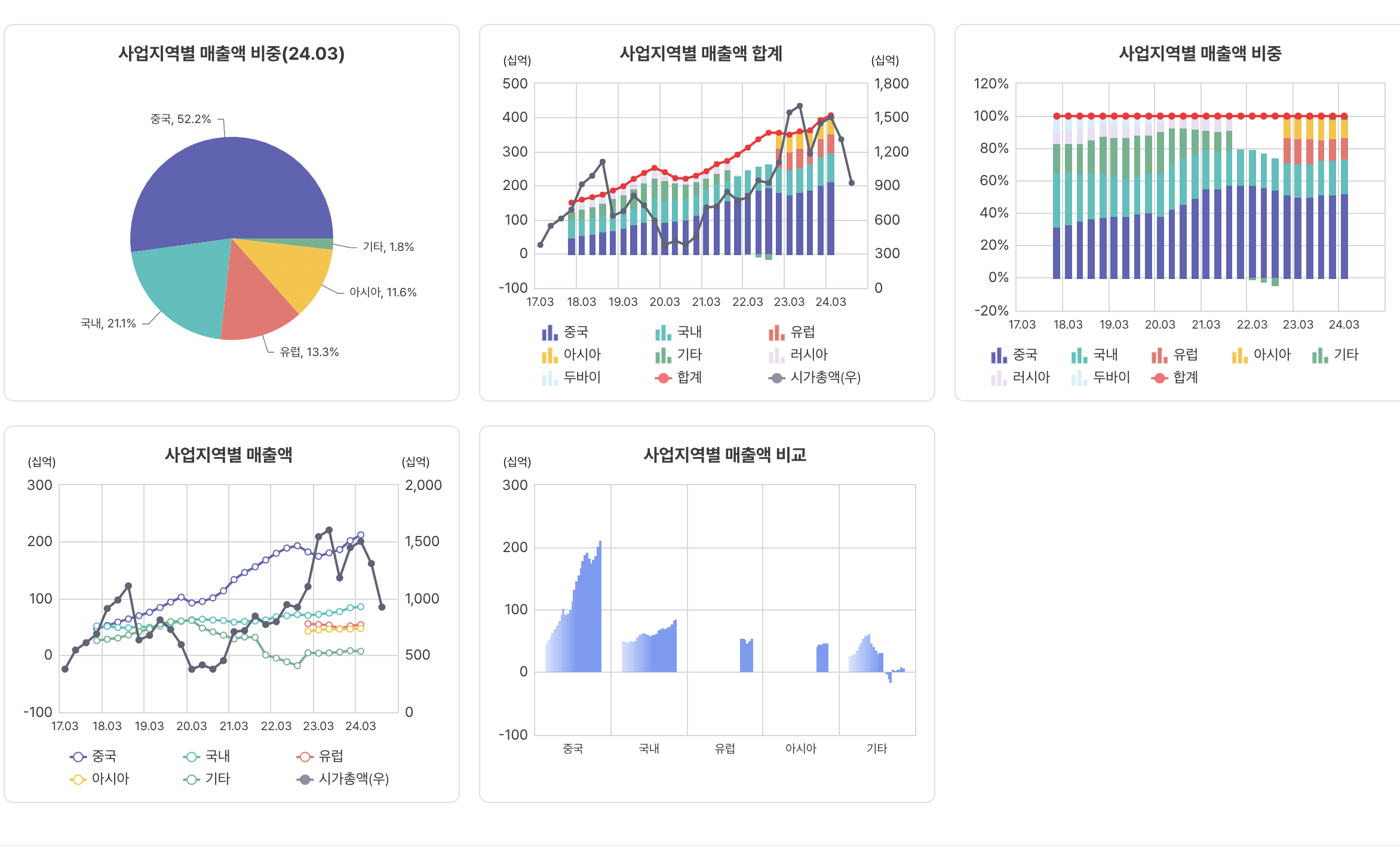 중국 > 국내 순으로 매출 비중이 높음...아무리 중국을 욕해도 중국과 무역이 끊기면 많은 기업이 힘들어 지겠구나.