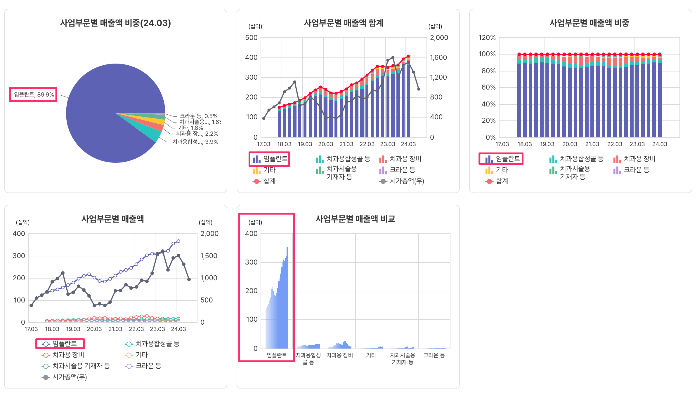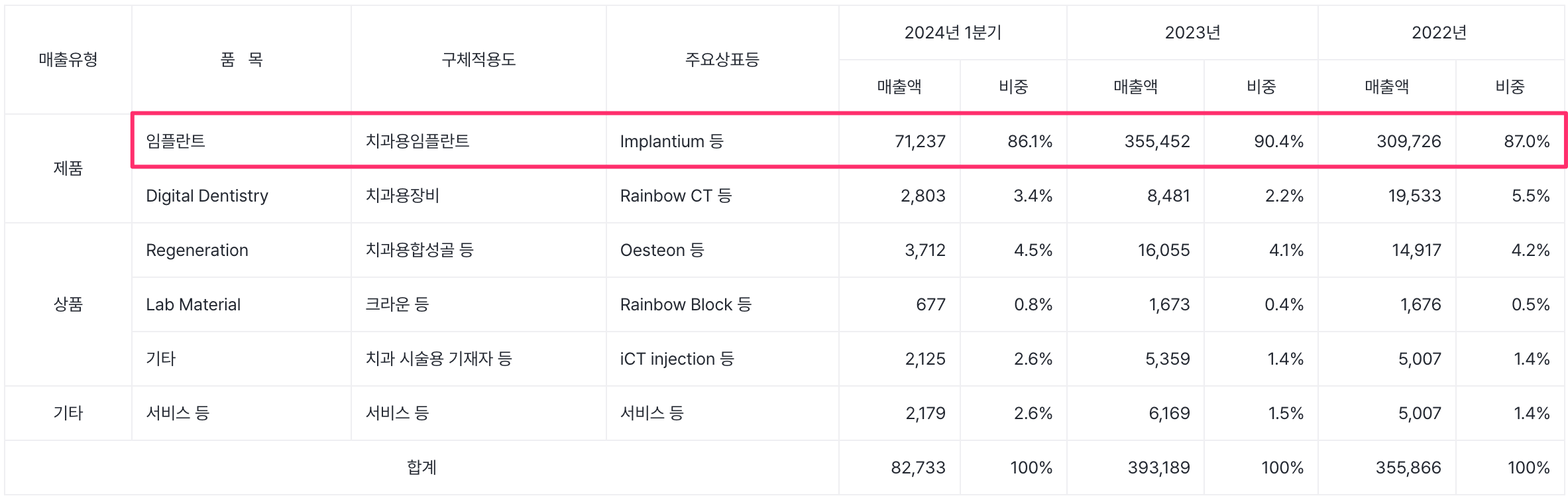임플란트 매출 비중이 86%이군