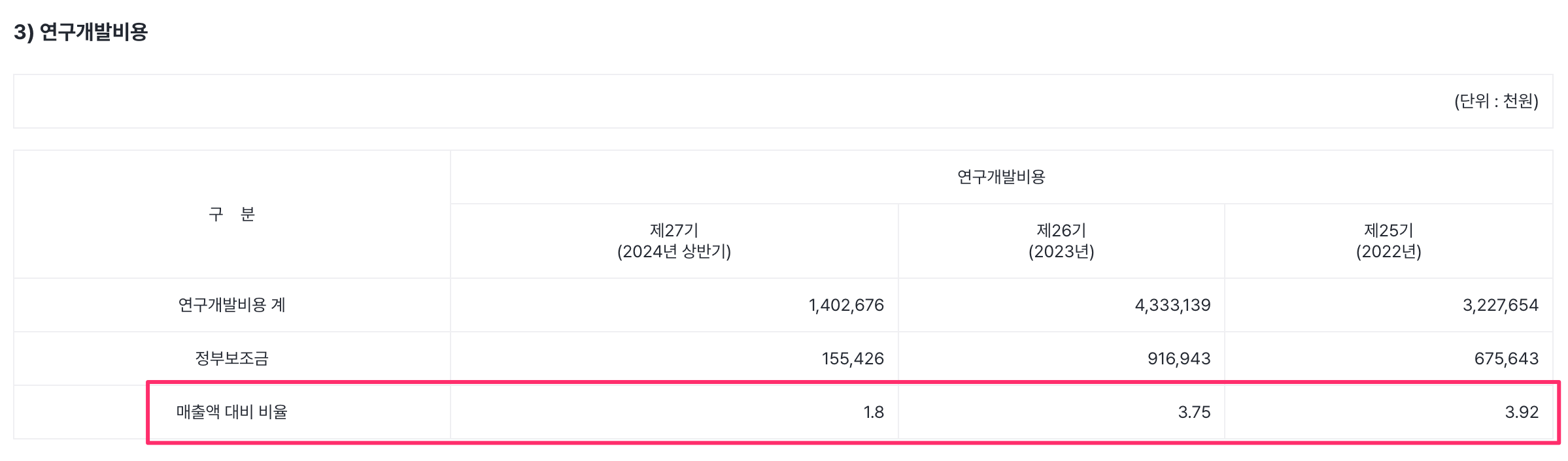 매출액 대비 연구개발비용은 3.8% 정도로 높은편은 아님