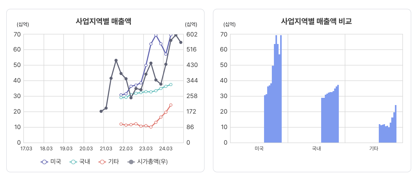 아직 초기 시장인 해외에서 국내 대비 높은 판매가격을 부여 받고 있음